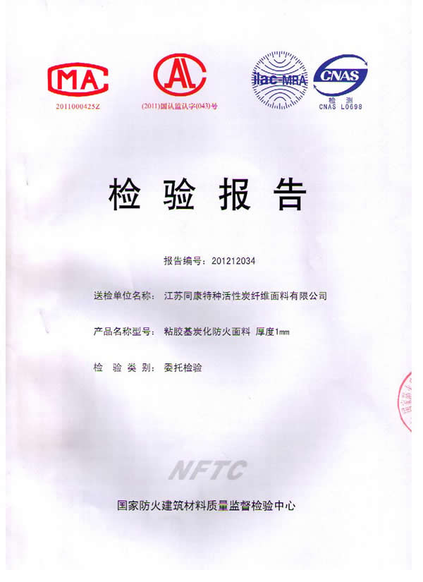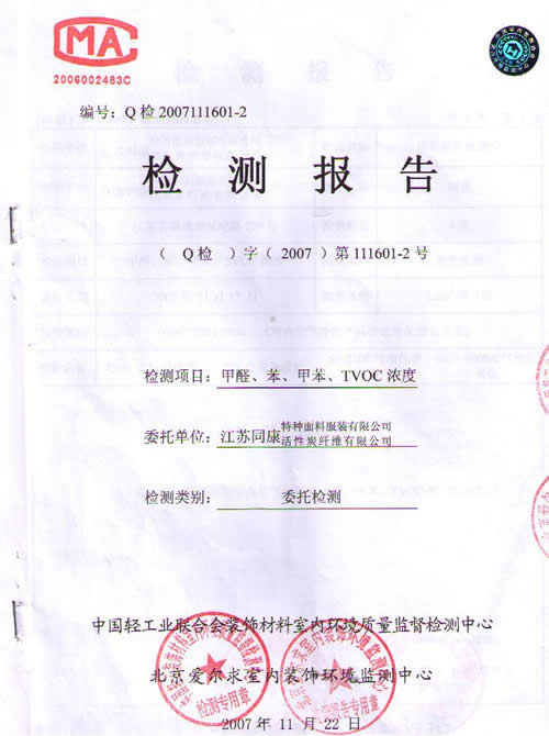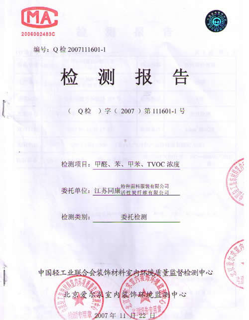 活性炭纖維織物窗簾檢測(cè)報(bào)告