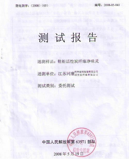 鞋柜活性炭纖維凈味靈檢測(cè)報(bào)告