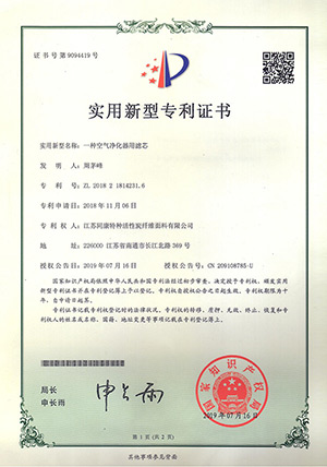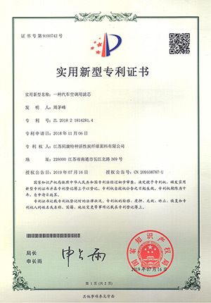 專利證書(shū)一種汽車空調(diào)用濾芯