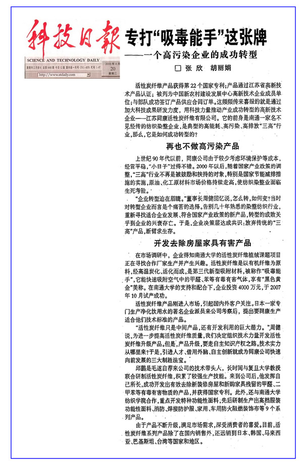 科技日報——專打“吸毒能手”這張牌——一個高污染企業的成功轉型