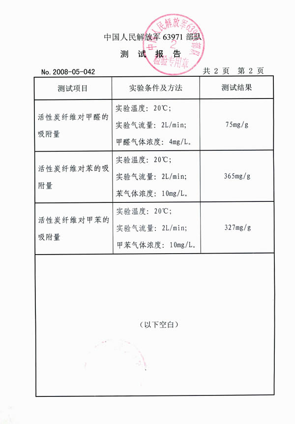 江蘇同康特種活性炭纖維公司生產(chǎn)的活性炭纖維居室凈味寶、汽車凈味寶獲得國家專利,特別適用于新裝居室、汽車或及新置家具里各種有害物質(zhì),尤其是致癌物質(zhì)、芳香族類的化合物(如苯類、醛類)的去除,使空氣潔凈清新,有利人體身心健康。該產(chǎn)品經(jīng)中國室內(nèi)裝飾協(xié)會環(huán)境監(jiān)測中心檢測對甲醛、苯、甲苯、有機(jī)揮發(fā)物(TVOC)的消除有明顯作用。